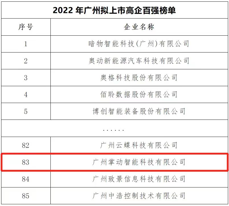 On September 27, 2022, the name list of the 2022 Guangzhou Top 100 High-tech Companies Set for IPO and the Reserve List Unveiled. Zhangdong Intelligent Technology secured a place in the first list, and POI-TECH made it to the second list.