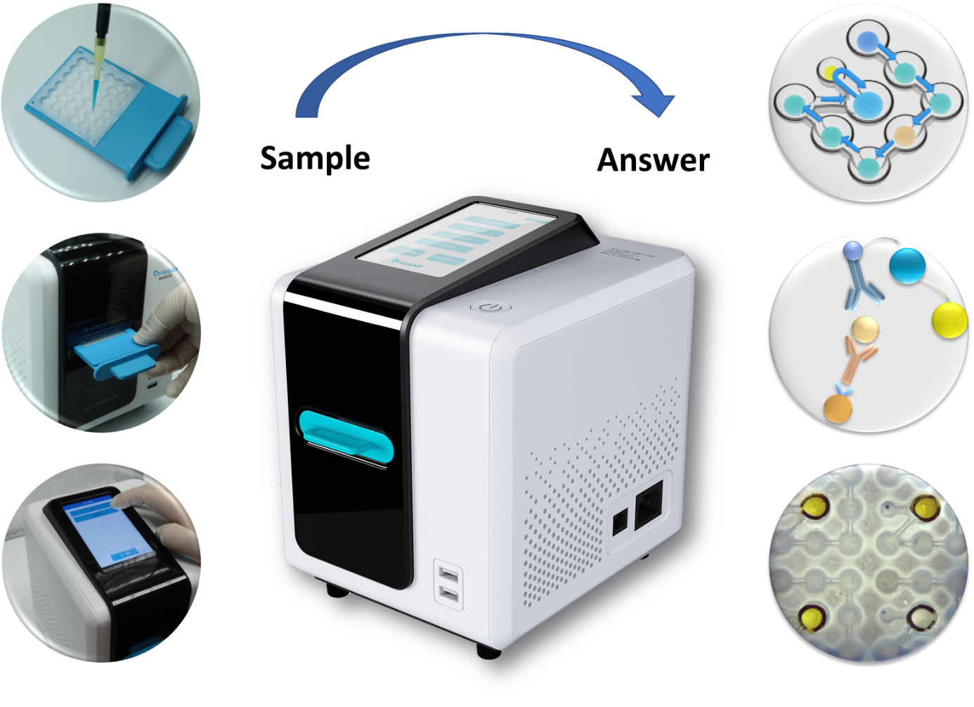 滴验科技基于多年研发的磁性数字微流控(MDM)技术开发了一种自动化“样本进-结果出”的现场快速免疫诊断平台,该平台可以提供从样本到结果的快速、准确、灵敏、定量且具有成本效益的诊断。
