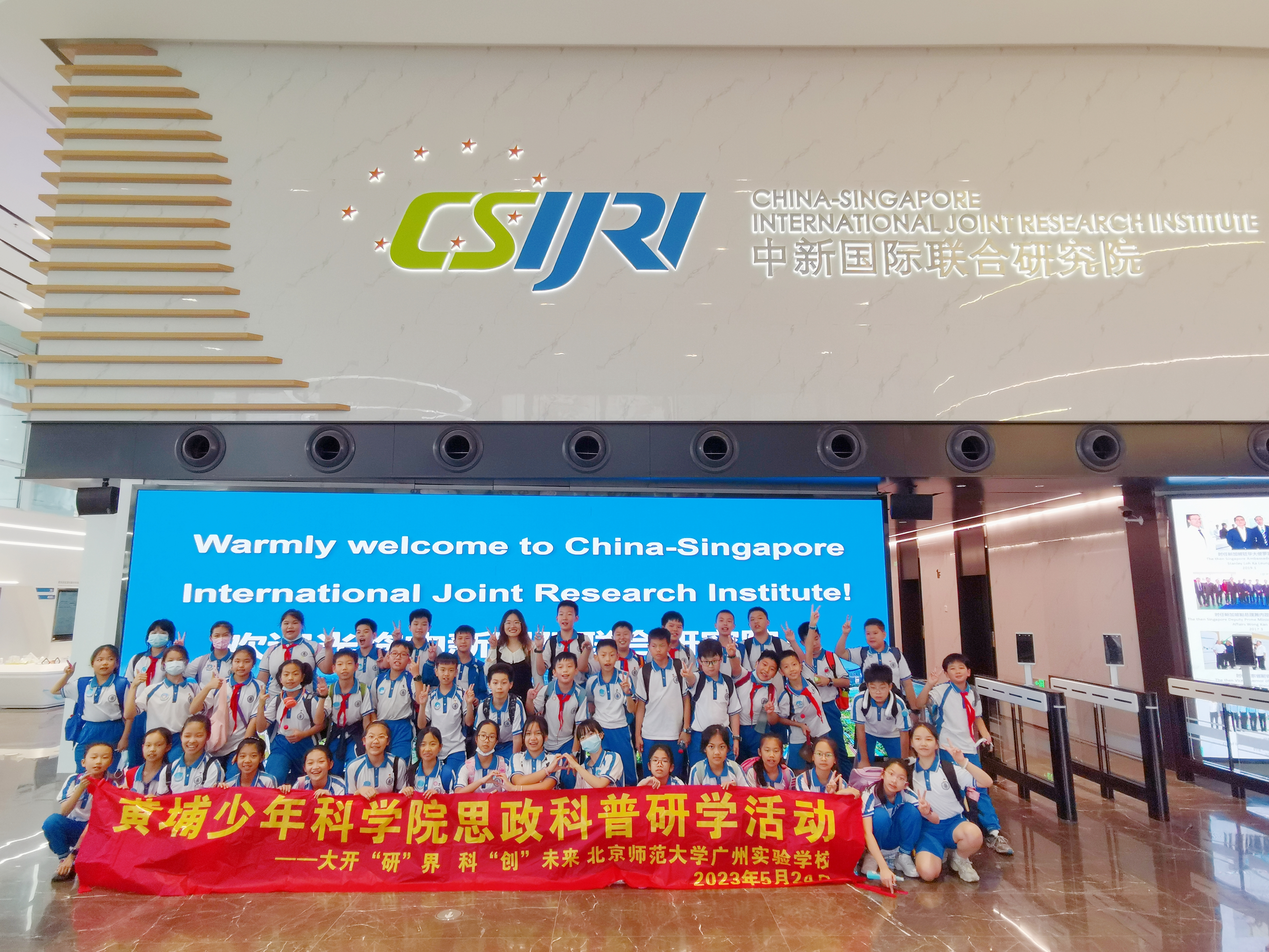 5月24日,由广州市黄埔区教育局、广州市黄埔区科学技术协会主办的2023年黄埔少年科学院思政科普研学实践活动顺利举行。来自北京师范大学广州实验学校50多名师生走进中新国际联合研究院,体验了一场内容丰富、形式多样、参与度高的科普研学活动。