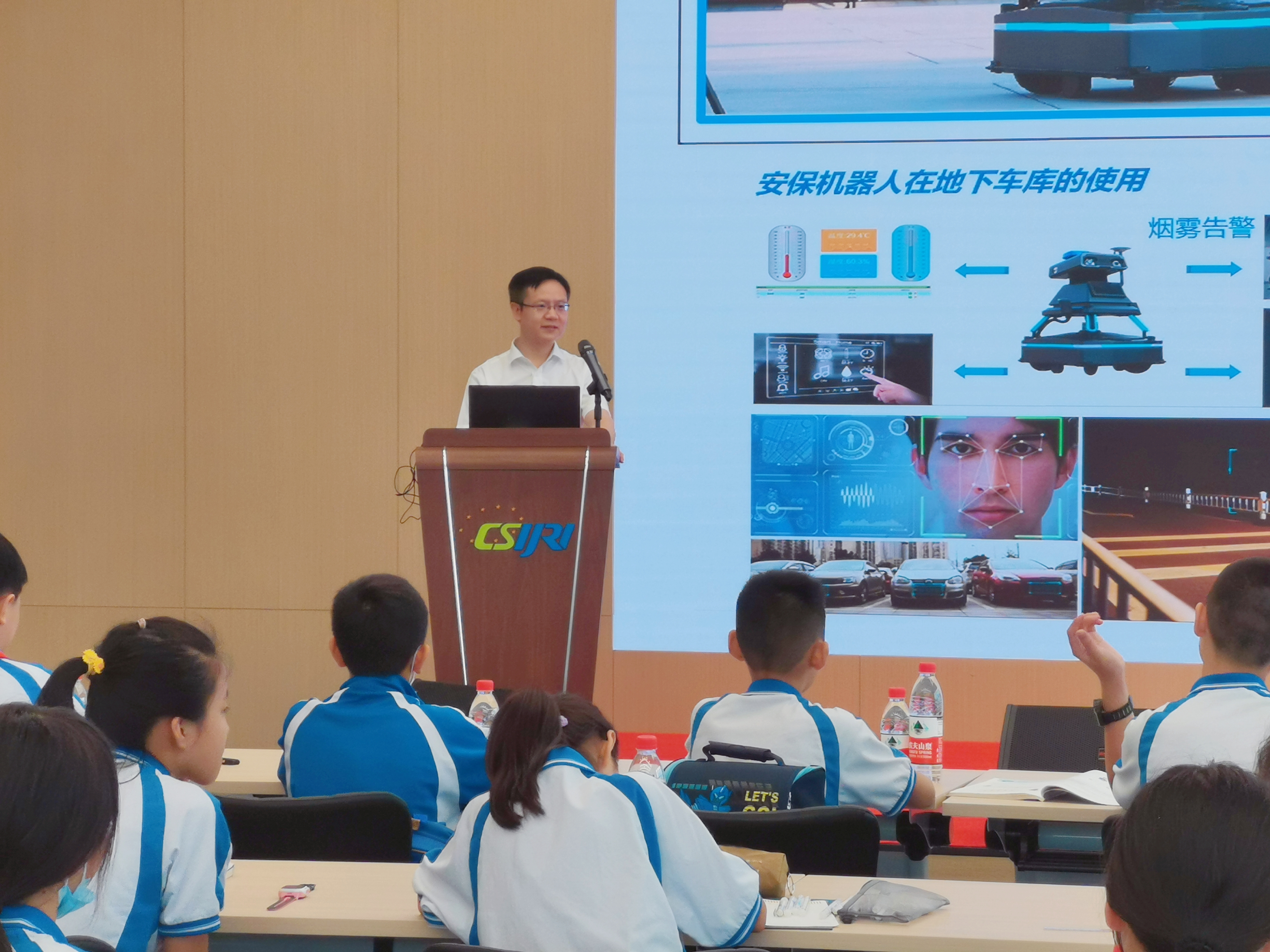 在科普知识讲座中,研究院科研人员作了“酶联免疫吸附测定介绍”和“机器人行业简介与智能巡检机器人功能介绍”的主题分享,还将研究院项目团队自主研发的智能巡检机器人带到了舞台上,邀请学生亲身体验智能巡检机器人的神奇感受。同时,科研人员以自身专业的视角,讲述自己对于科学的看法与追求,当学生与科技工作者面对面交流,不仅拉近了科学与学生之间的距离,还激发学生们热爱科学、崇尚科学的热情,在探索、体验学科学、爱科学、用科学中不断提升学生的科学素养。