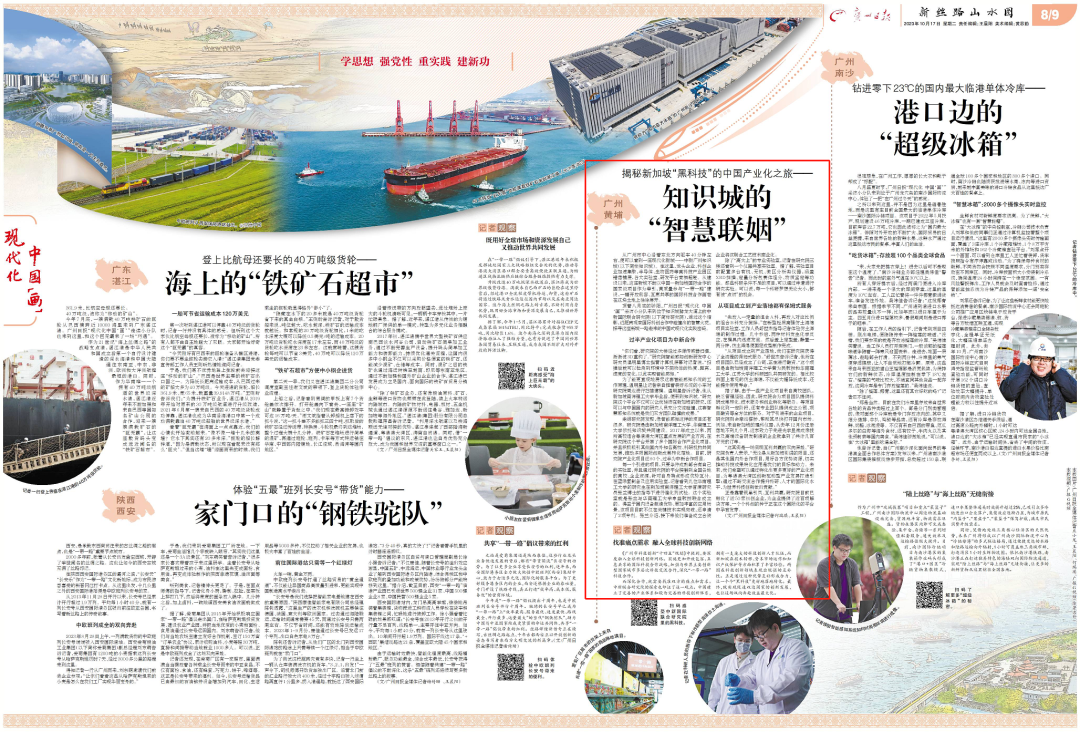 中新国际联合研究院作为中国和新加坡共同推动建设的重大国际科技合作平台,是一家集技术创新、科技成果转化、企业孵化及产业化于一体的研究机构。研究院架起了中新交流合作的“桥梁”,让海外项目得以迅速打开中国市场,成为知识城飞速发展的参与者和见证者,受到多家媒体关注报道。10月17日,广州日报以《知识城的“智慧联姻”》为题,对研究院进行了报道。