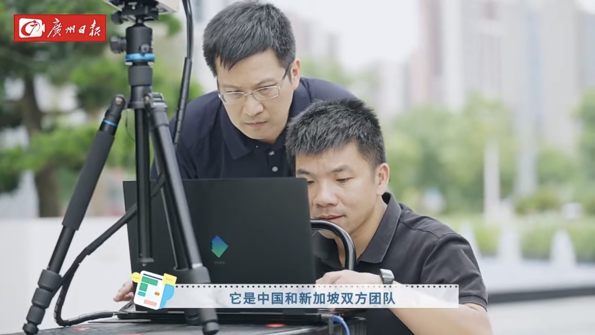 为了能更直观地展示这套智能感知系统的工作原理,温明星让记者亲自推着装好系统的小车对研究院周边进行扫描建模。温明星告诉记者,他从新加坡南洋理工大学毕业后,便来到知识城。“研究院这个平台不仅可以让我延续在新加坡的研究,还可以与中国国内的研究人员充分交流碰撞,这套智慧感知系统就是我们双方团队碰撞的成果。”