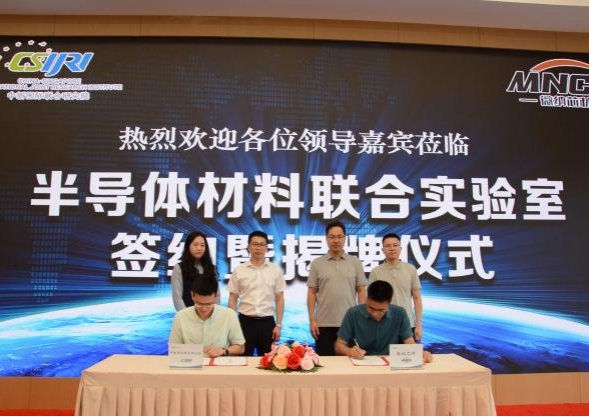 5月30日,中新国际联合研究院和广州微纳芯材料科技有限公司共建的半导体材料联合实验室签约暨揭牌仪式在研究院举行。