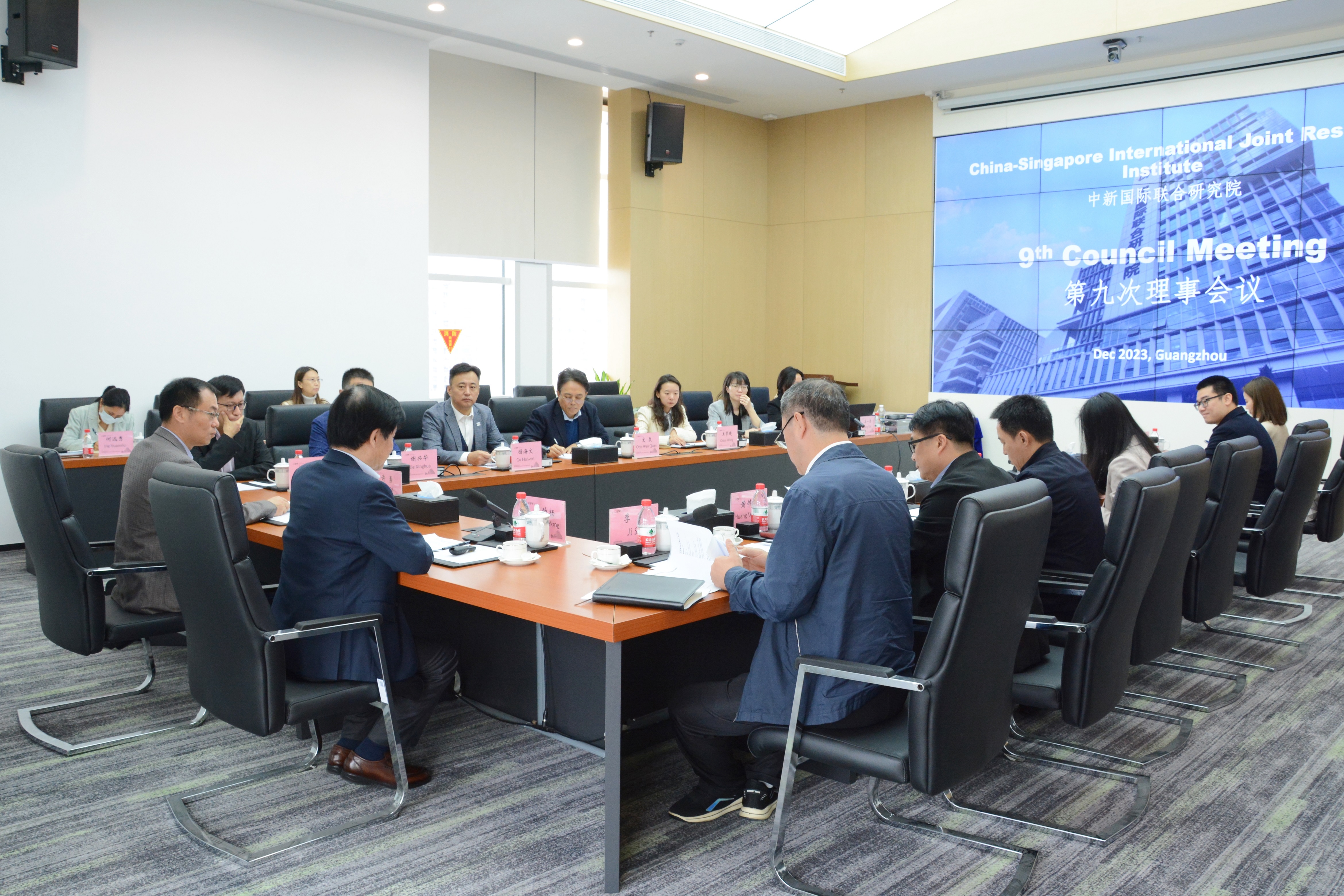 12月4日,中新国际联合研究院第九次理事会会议在广州召开。理事及理事单位代表新加坡南洋理工大学副校长(产业)蓝钦扬,华南理工大学副校长许勇,黄埔区科学技术局一级调研员季思,中新广州知识城开发建设办公室党组成员、副主任黄伟坚,中新广州知识城投资开发有限公司战略合作总经理翁文炳,研究院管理层参加了本次会议。会议由研究院理事长蓝钦扬主持。