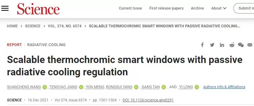 智能窗,“走”进《Science》